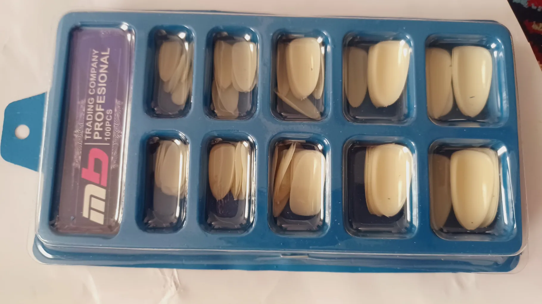 حتما سفارش بدین . ۱۰ سایزه و از هر سایز ۱۰ تا ناخن هست . این ناخن ها سفید رنگ هست و شما میتونید هر لاکی رو ک خواستین بزنین روی ناخن . راستی این ۱۰ سایزی هم ک هستند برای هر ناتنی میشه