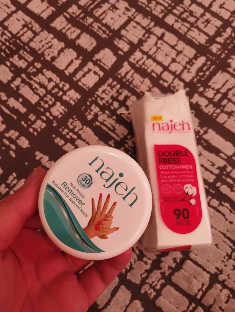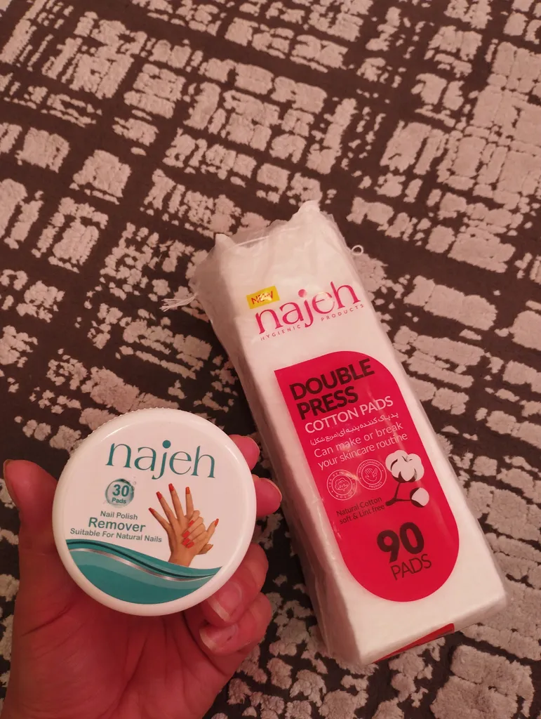 ثنا امینی : پد لاک پاک کن ؛ عااالیه من تا حالا لاک پاک کن ب این خوبی ندیدم هم جاش خیلی خوشگله هم پدش بزرگ و ضخمه و خوب پاک می کنه لاک رو برای لاک روشن یک دونه ش برای کل دست کافیه موادش هم خیلی خوبه اصلا ناخنو اذیت و خراب نمیکنه یه پد آرایش پاک کن هم باهاش بود