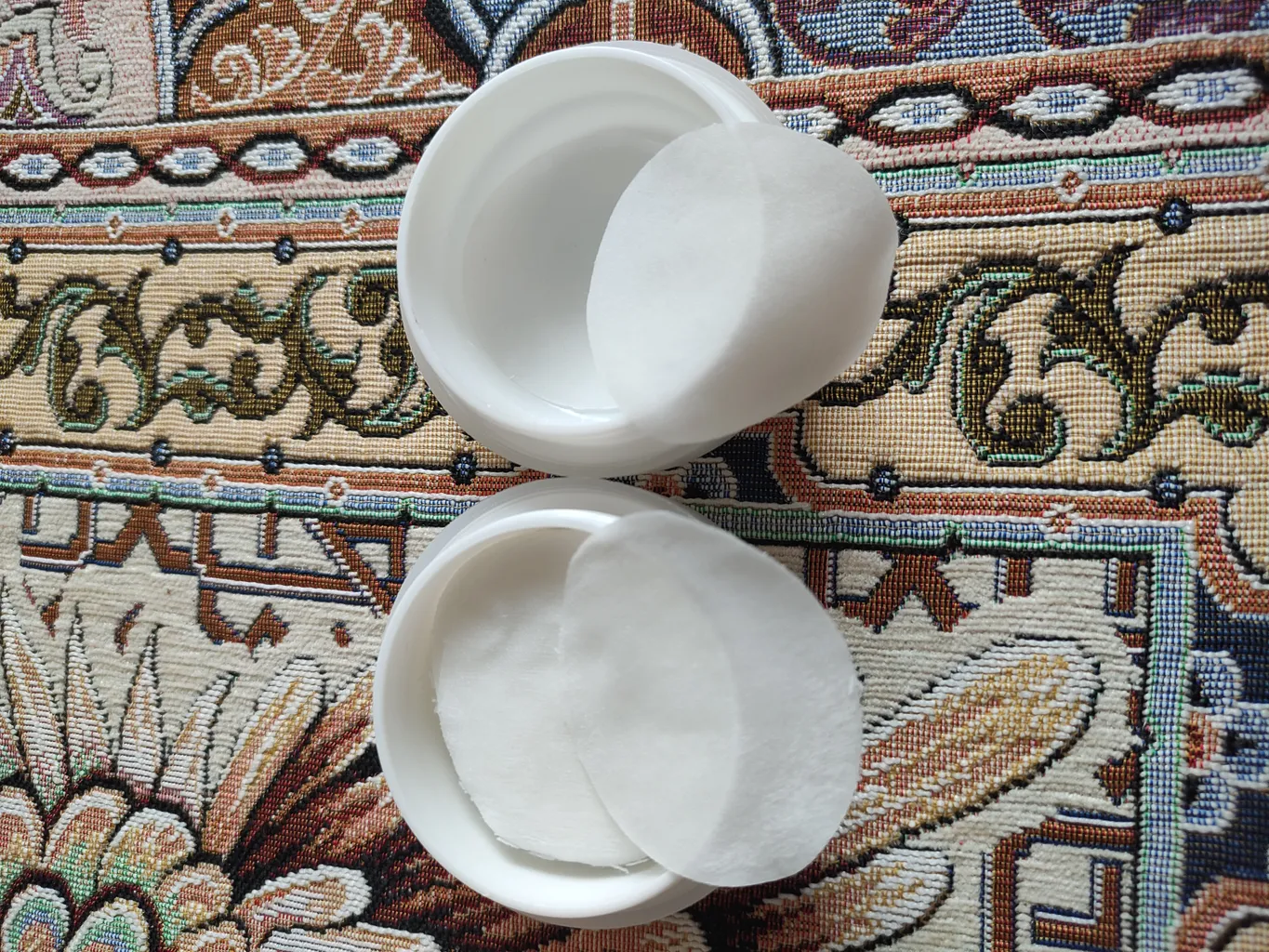 توی جعبه، پدها توی یه قوطی مثل قوطی کِرِم دست هستن و داخل قوطی هم یه درپوش همیشگی هست که رطوبت پدها رو حفظ می کنه.