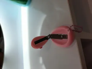مثل عکسه. فقط عروسکش چسبیده نبود و ازاد تو بسته بود. پشت عروسک یه چسب داره ولی برا احتیاط باز چسب یک دو سه زدم. جنسش خوبه. جنس ناخونگیرش استیل خوبیه. عکس میذارم