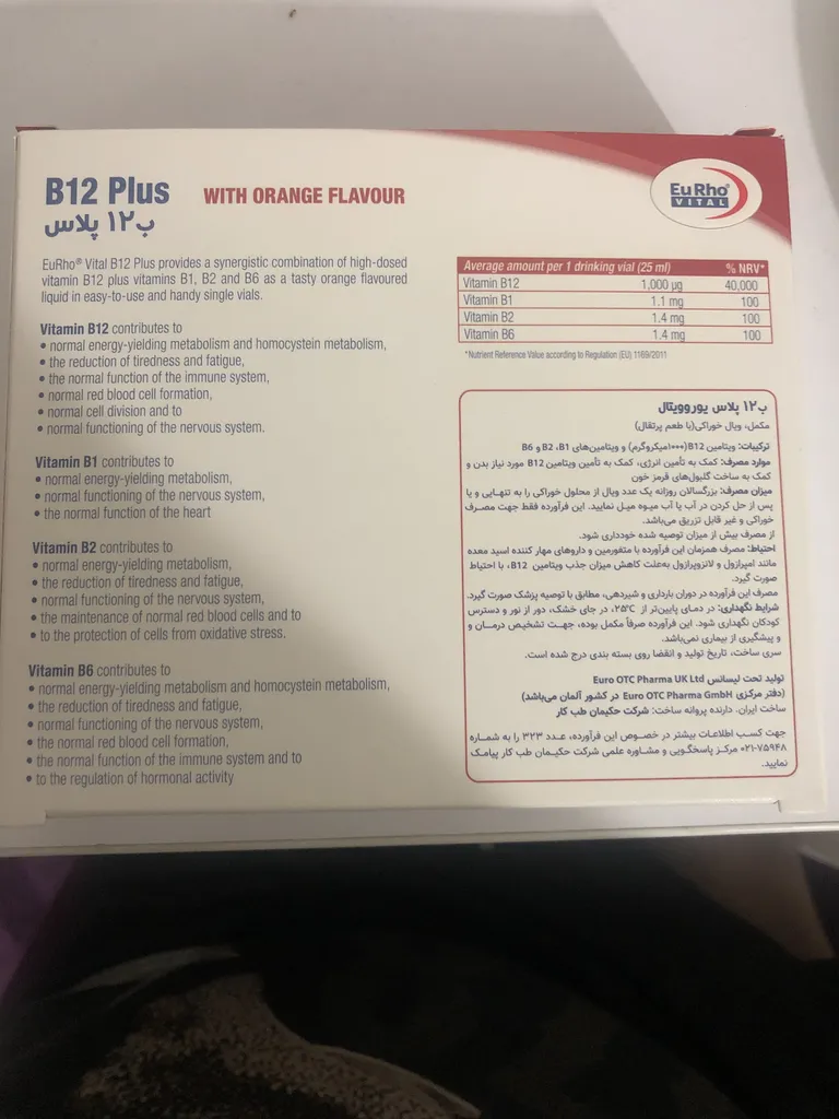 نظر و تجربه خرید ویال خوراکی ویتامین B12 پلاس یوروویتال بسته 6 عددیدر تاریخ ۲۲ تیر ۱۴۰۴