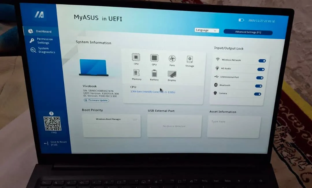 - ⬤ وجود حسگر اثر انگشت : این ویژگی برای امنیت بیشتر و ورود سریعتر به سیستم مفید است. حسگر اثر انگشت میتواند به شما کمک کند تا بدون وارد کردن رمز عبور وارد سیستم شوید و امنیت اطلاعات شما را افزایش دهد.