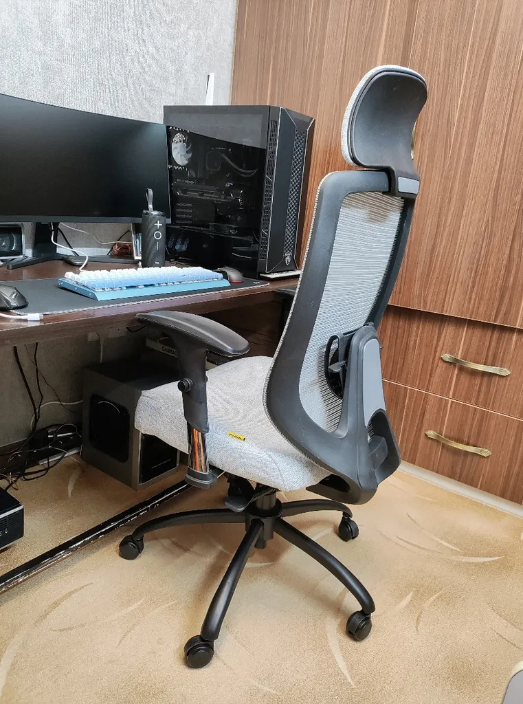 - ⬤ دستههای قابل تنظیم : دستههای صندلی باید قابلیت تنظیم ارتفاع و زاویه داشته باشند. این ویژگی به کاربران کمک میکند تا دستهای خود را در وضعیت راحتتری قرار دهند و از خستگی جلوگیری کنند. دستههای سفت و غیرقابل تنظیم میتوانند باعث ناراحتی شوند.