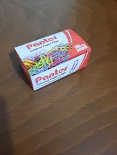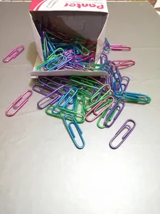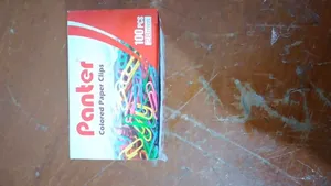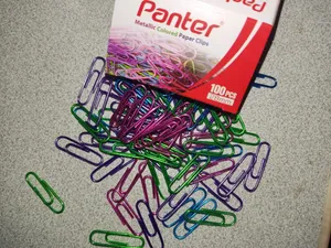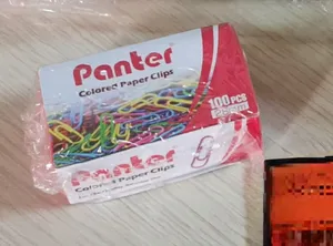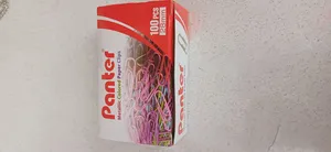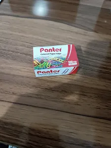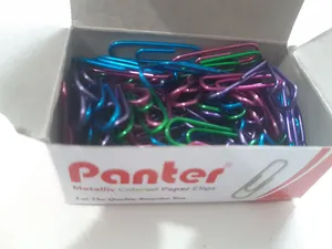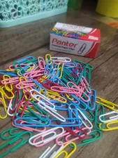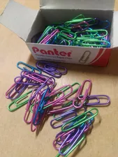 گیره کاغذ پنتر ؛ کلا نود و هفت تا دونه گیره داشت رنگ آبی و سبز خیلی کم بود بیشتر صورتی بود و بنفش