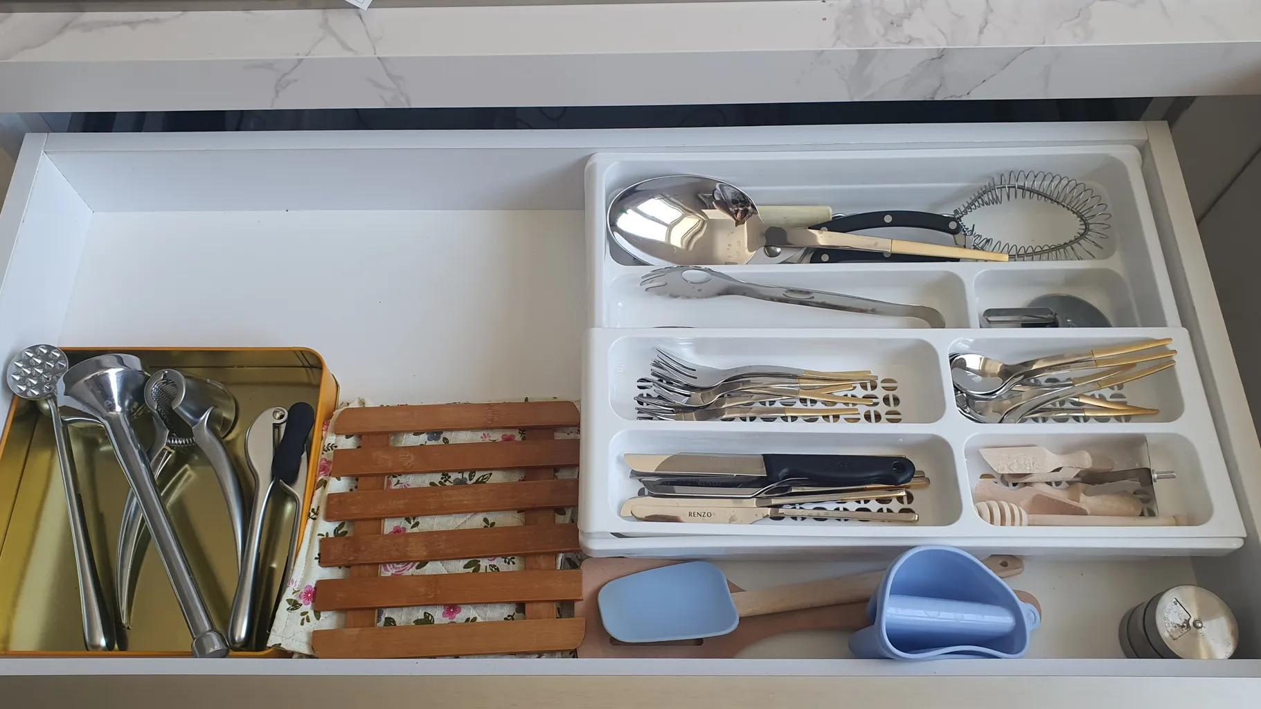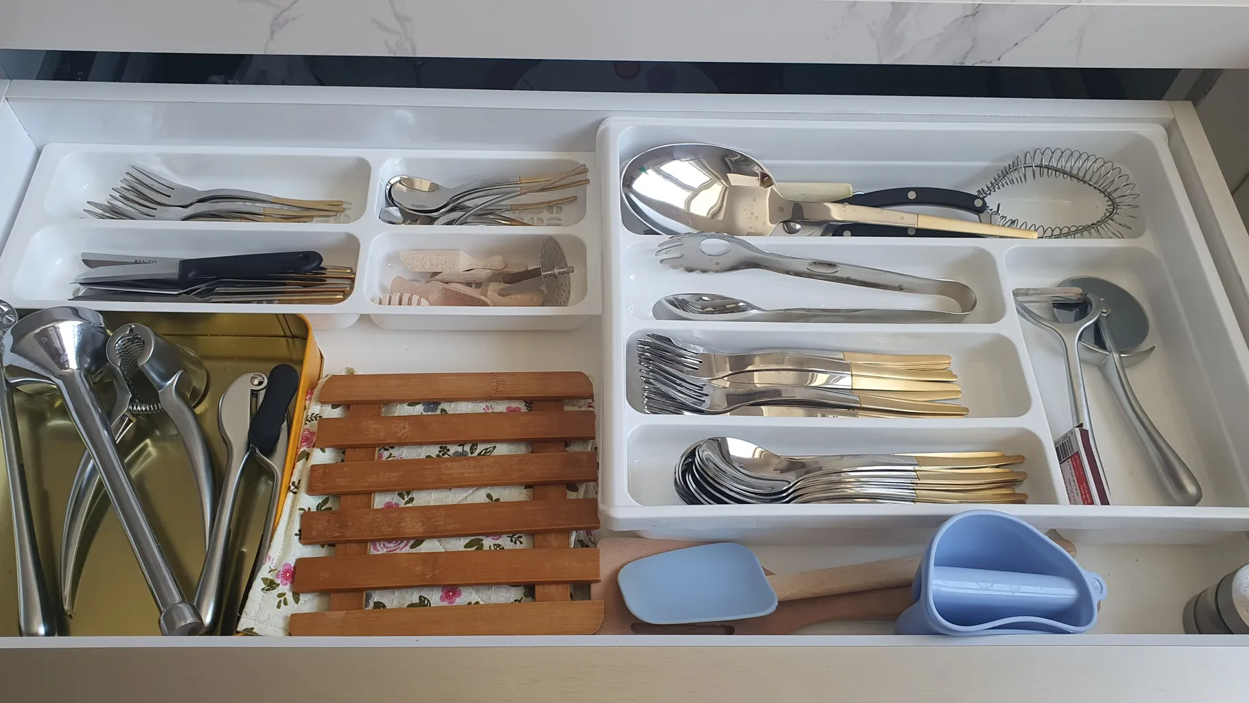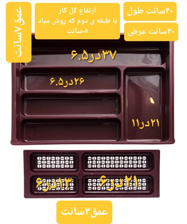 - ⬤ نظم دهنده قاشق و چنگال : این نظمدهندهها به نگهداری قاشق و چنگال کمک میکنند. خریداران از طراحیهای زیبا و کاربردی این محصولات استقبال کردهاند، اما برخی از آنها به عدم استحکام و کیفیت پایین مواد ساخت انتقاد کردهاند.