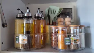 - ⬤ نظم دهنده کابینت : این محصولات به منظور نظمدهی به فضای کابینت طراحی شدهاند. خریداران از کارایی و فضای بیشتری که این نظمدهندهها فراهم میکنند، راضی هستند، اما برخی از آنها به ابعاد نامناسب و عدم تناسب با فضای کابینت اشاره کردهاند.