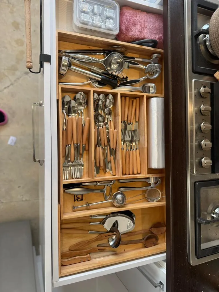 - ⬤ نظم دهنده قاشق و چنگال : این نظمدهندهها به نگهداری قاشق و چنگال کمک میکنند. خریداران از طراحیهای زیبا و کاربردی این محصولات استقبال کردهاند، اما برخی از آنها به عدم استحکام و کیفیت پایین مواد ساخت انتقاد کردهاند.