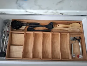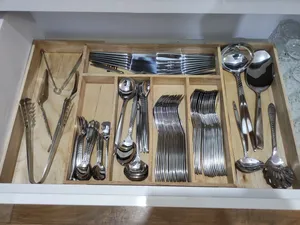 - ⬤ جعبه قاشق و چنگال : این جعبهها به نگهداری قاشق و چنگال کمک میکنند. خریداران از طراحیهای زیبا و کاربردی این محصولات استقبال کردهاند، اما برخی از آنها به عدم استحکام و کیفیت پایین مواد ساخت انتقاد کردهاند.