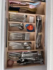 - ⬤ نظم دهنده قاشق و چنگال : این نظمدهندهها به نگهداری قاشق و چنگال کمک میکنند. خریداران از طراحیهای زیبا و کاربردی این محصولات استقبال کردهاند، اما برخی از آنها به عدم استحکام و کیفیت پایین مواد ساخت انتقاد کردهاند.