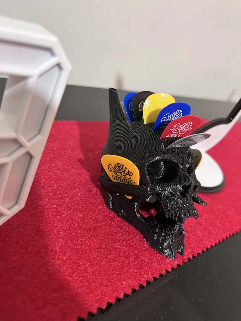 علیرضا عسگری : نگهدارنده پیک اونی ؛ من رنگ نقره ای گرفتم، راضیم، اینکه سطحش راه راهه ناشی از پرینت سه بعدی رو داره اتفاقا جالب ترش کرده، روی سرش پیک با ضخامت نهایت 1.5 میلیمتر جا میشه ولی کنار صورتش دو تا 2 میلیمتر هم میشه گذاشت، مجموعا 10 تا پیک. توخالی و سبکه، گذاشته بودن تو یه جعبه بزرگ که آسیب نبینه و این خوب بود