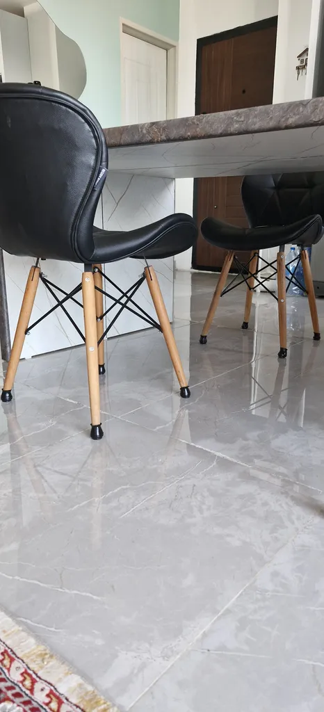 آشغال ترین چیزی که خریدم در عرض ۱ هفته نشد که اکثرشون پاره شدن و از پایه میز جدا میشدن و باز صدای وحشتناک میومید واقعا بدنخور بودن. صندلی هامون جنسش استیل و کف آشپزخانه سرامیک هست که عکسشم میزارم.