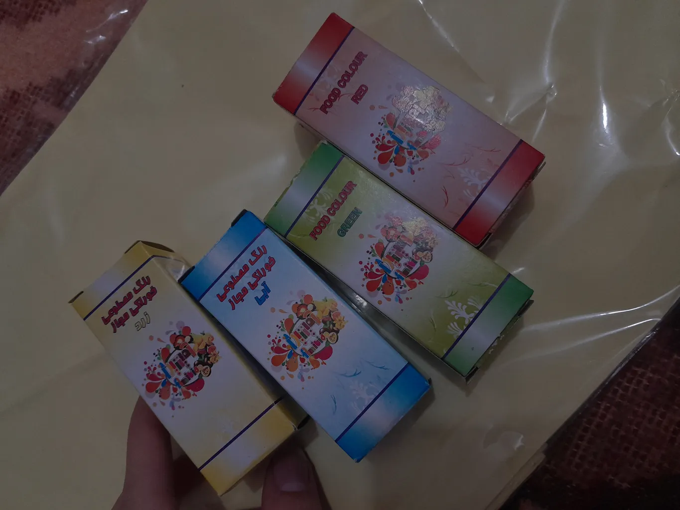 نظر و تجربه خرید رنگ خوراکی قرمز و سبز و آبی و زرد طلایی آمیتیدا - 200 گرم بسته 4 عددیدر تاریخ ۱۸ خرداد ۱۴۰۴