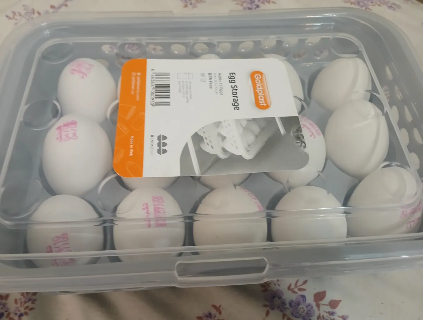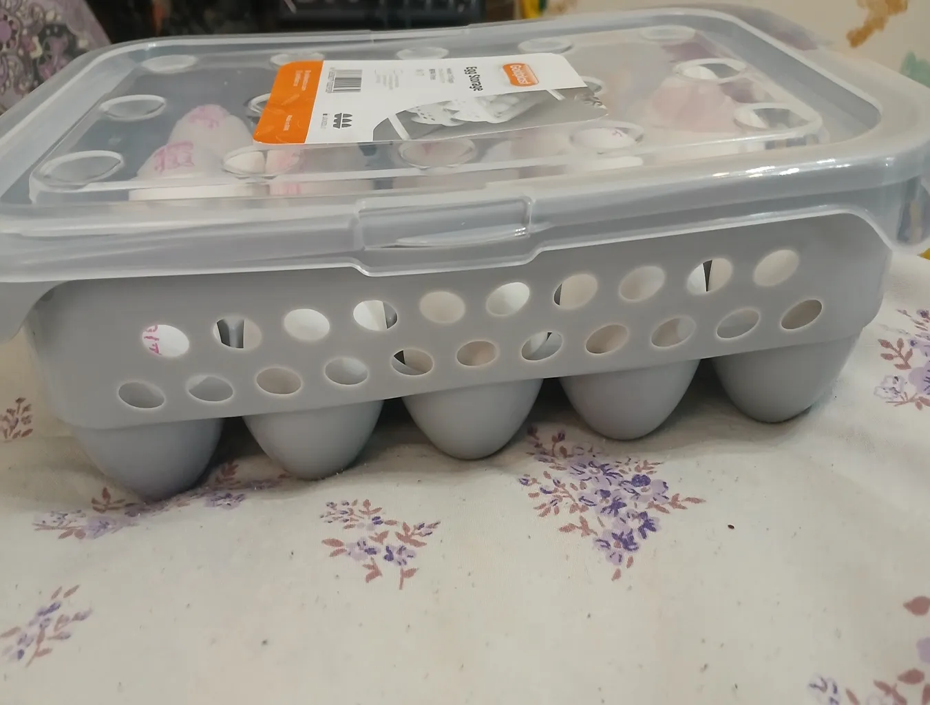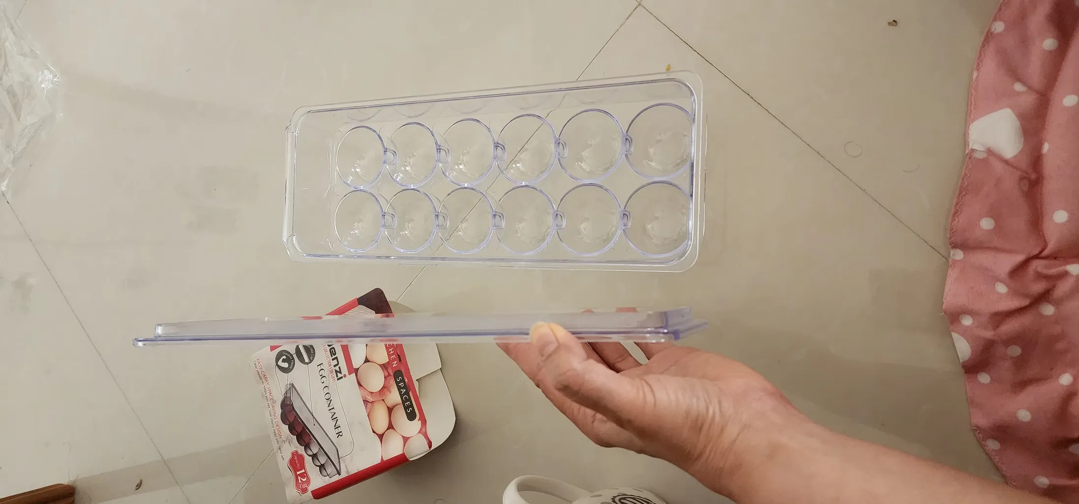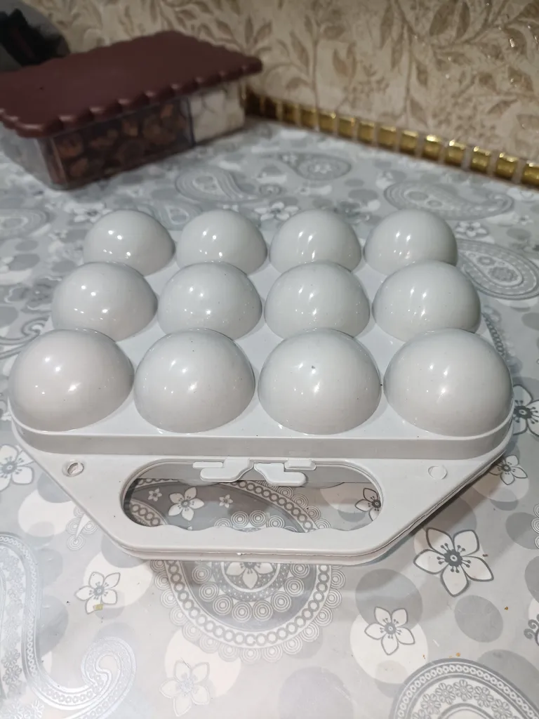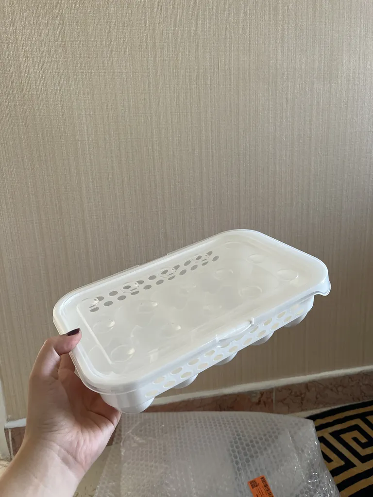 مرضیه صالح زاده : ظرف جای ۱۲عدد تخم مرغ رو داره و قشنگ تخم مرغ درشت داخلش جا میشه.