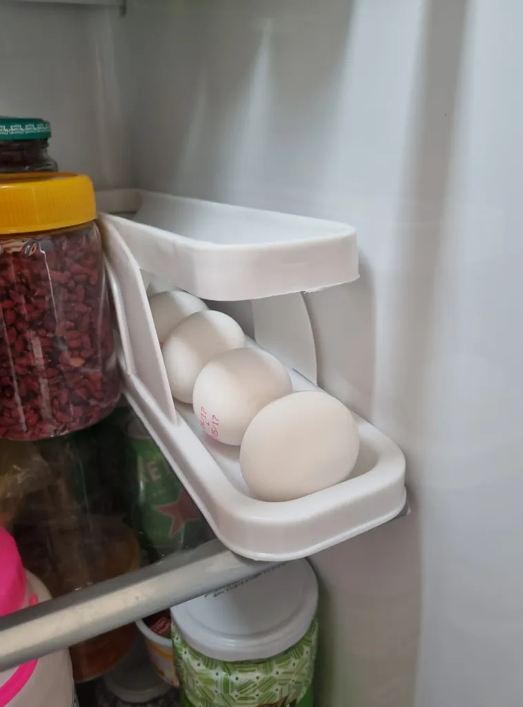 من یخچالم دوو هست و داخل درش جا نشد و داخل طبقات یخچال گذاشتم که چون در داره و محکمه اتفاقا خیلی بهتر شد چون اینجوری تخم مرغها دیرتر خراب میشن.