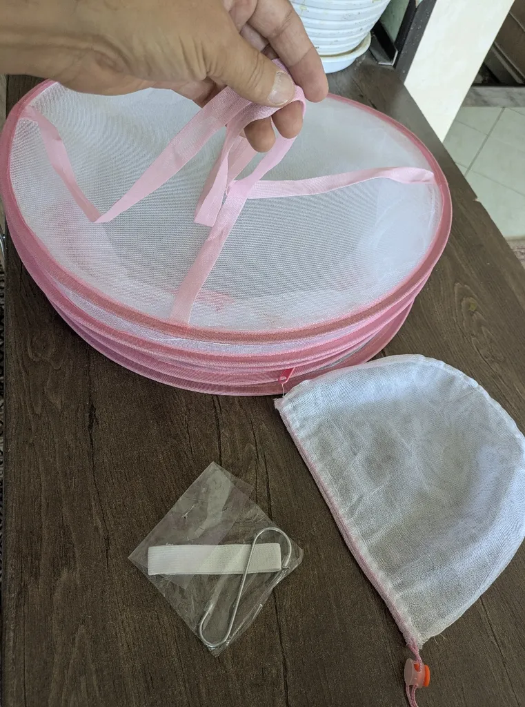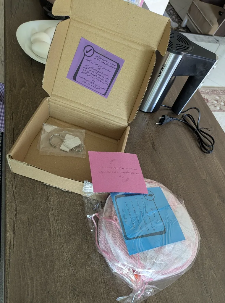 سلام .این محصول علاوه بر بسته بندی عالی و کاغذ های چاپ شده برای راهنمایی و ...خیلی حس خوبی بود جنس توری عالیه ،یه کیسه محکم داره که بعد استفاده توری رو میتونیم جمع کنیم بزاریم تو کیسه و حلقه و کشی که خیلی لازمه ،فروشنده محترم فکر همه جا رو کردن ،تنها کاری که میتونستم بکنم این بود یه نظر و عکس و محصولش رو بزارم خودش گویای همه چیه ،پر روزی باشن ،ممنونم ازشون
