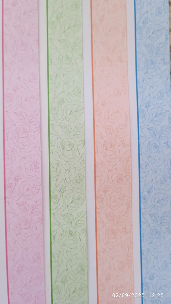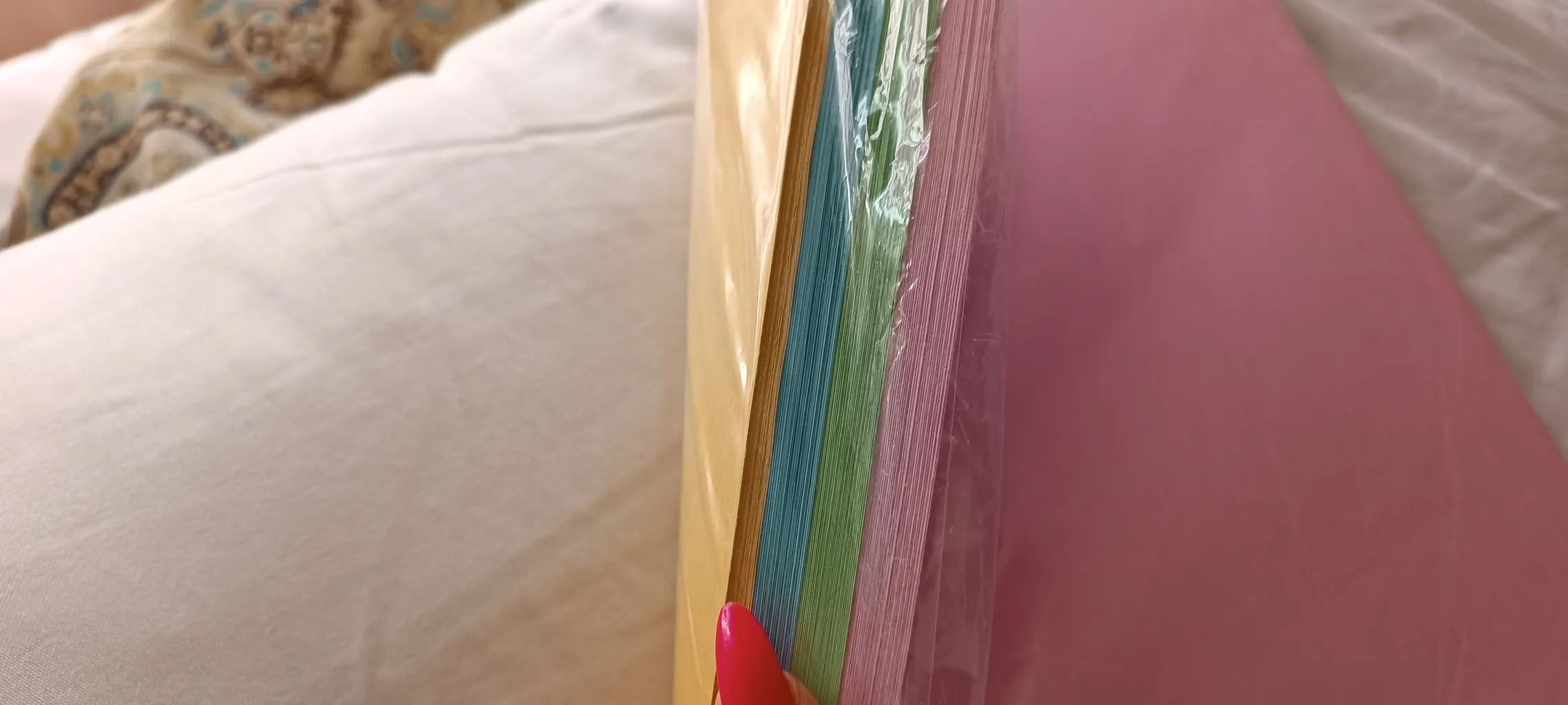 ۵ رنگ بود. رنگهای بسیار کم رنگ و ملایم و بی جون که وسط کاغذ ها هم رگه های پررنگ و کمرنگ داشت. بیشتر به درد نوشتن میخورد تا کاردستی.