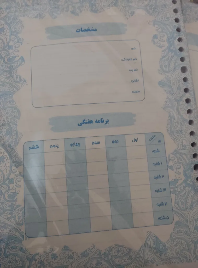 طول کاغذ به اندازه ژ قبلی ها بود اما عرض ش ۱سانت کوچکتر بود. خط های کاغذ آبی رنگ هست و با فاصله ی بیشتر از معمول که به راحتی میتوان در همه ی خطها نوشت .و احتیاج به یک خط در میان نوشتن نیست