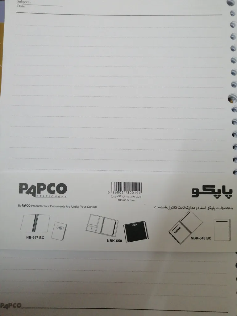 برگه ۱۰۰ عددی پاپکو ۲۶ حلقه ؛ من مدتهاست از بزگه های پاپکو استفاده میکنم، واقعا راضیم، برگه های سفید با خط چین های کمرنگ و چاپ تمیز داره، برای اولین بار شمردن ۹۹ تا بود با یه برگه سفید آخرش و ۴ تا مقسم طلقی، من از فروشگاه کانون ۲۹ تومن خریدم و راضیم
