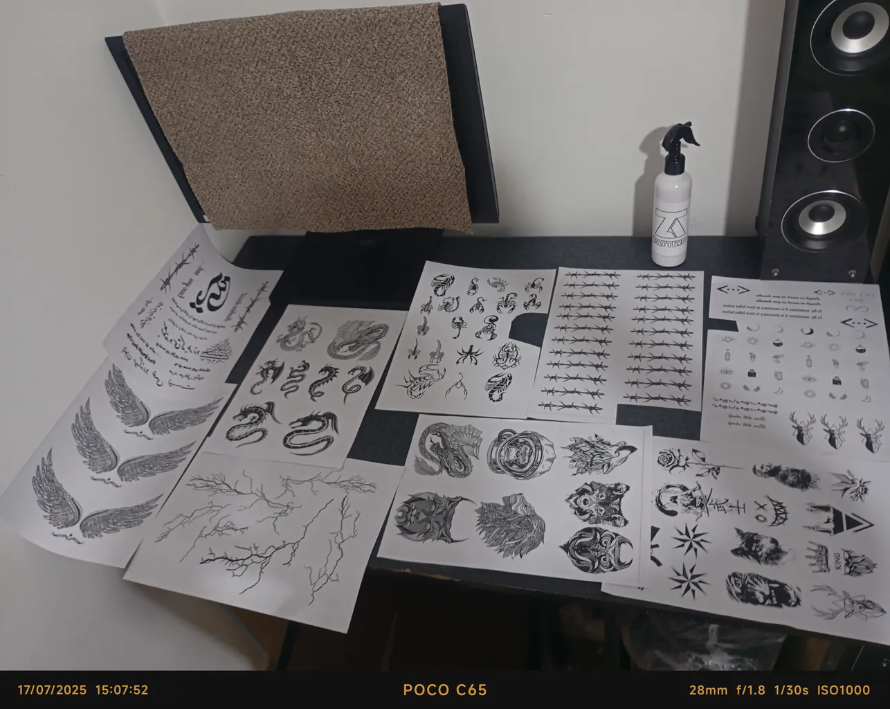 نقش های تتو هم روی کاغذ a4 پرینت شدن