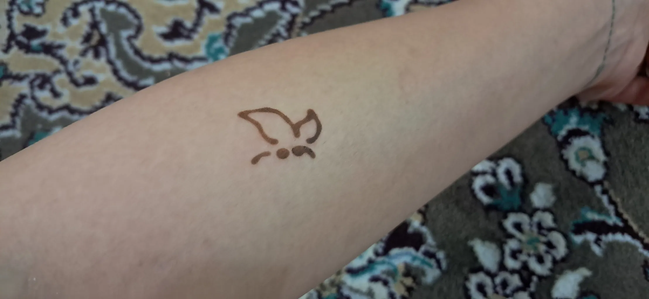 فریبا رحمانی اینی علیا : دوستان توجه داشته باشید این محصول اصلا حنا نیست و بیشتر مثل جوهره و بوی تندی داره و اگر خواستید استفاده کنید حتما از کسی دیگه کمک بگیرید چون اگر بد نقش بزارید پاک نمیشه ،من نمیدونستم و خودم اینکارو کردم به هوای اینکه حناست و زودم پاک میشه،بعد ۱۰ دقیقه بشورید و کمی چرب کنید ماندگاریشم به نظرم طولانیه