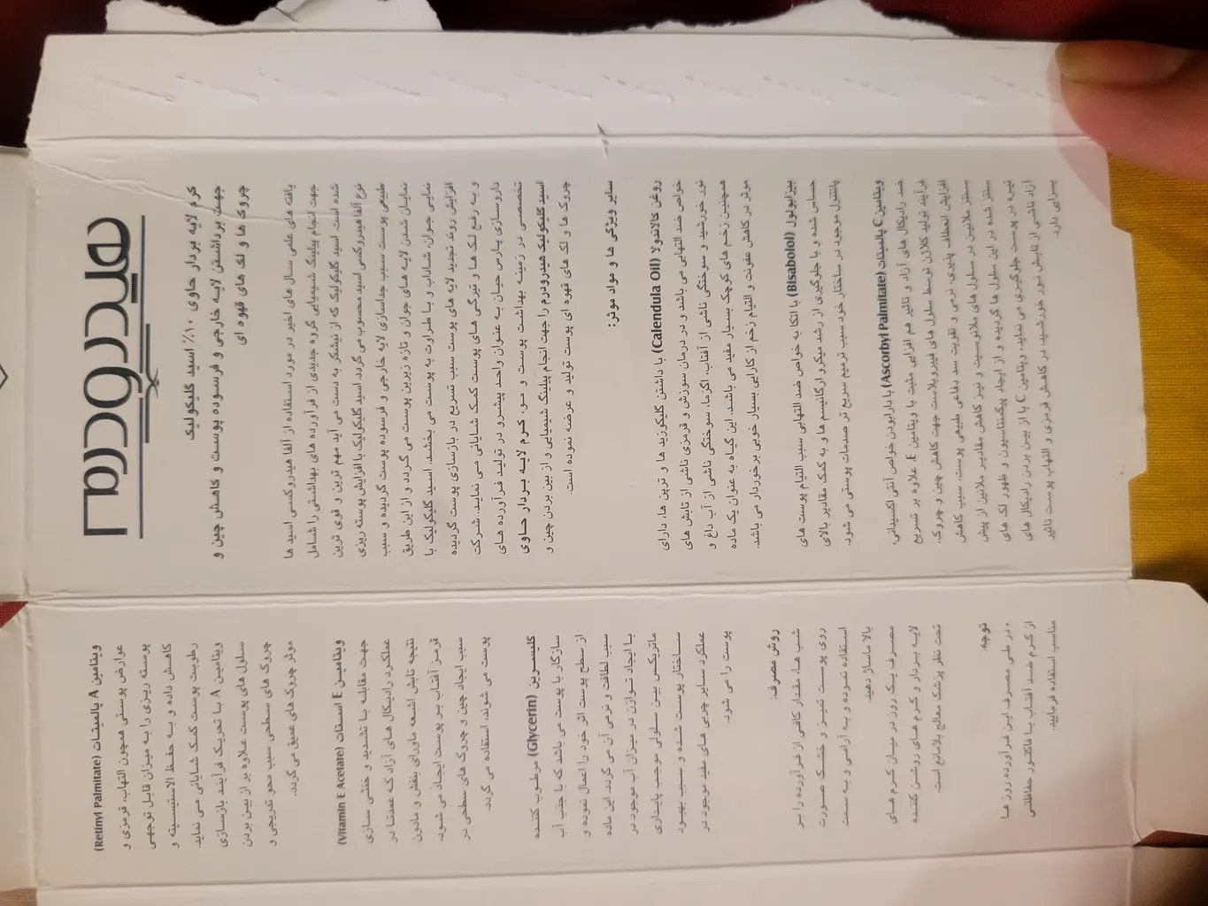 کرم گلایکولیک اسید هیدرودرم ؛ من در کل پوستم خوب شده، اما چون چند تا محصول رو باهم استفاده میکنم، نمیتونم اختصاصی فقط برای این محصول نظر بدم، ولی احساس میکنم صورتم شاداب و یکدست شده.