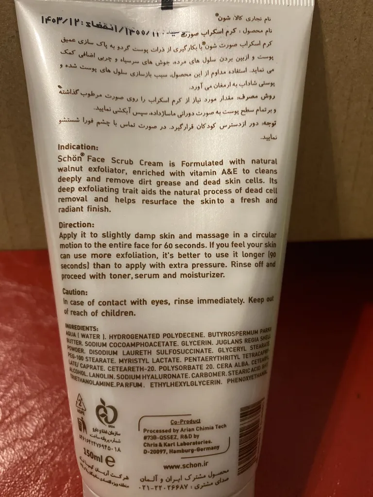 اسکراب صورت شون ؛ عالیه مخصوصا برا پوست مختلط برای من که خوب بود برای شروع توصیه میکنم هفته ای یک بار به صورتتون بزنید و اگه خواستید به مرور زمان هفته ای دوبار کنید البته بازم به پوست صورت بستگی داره