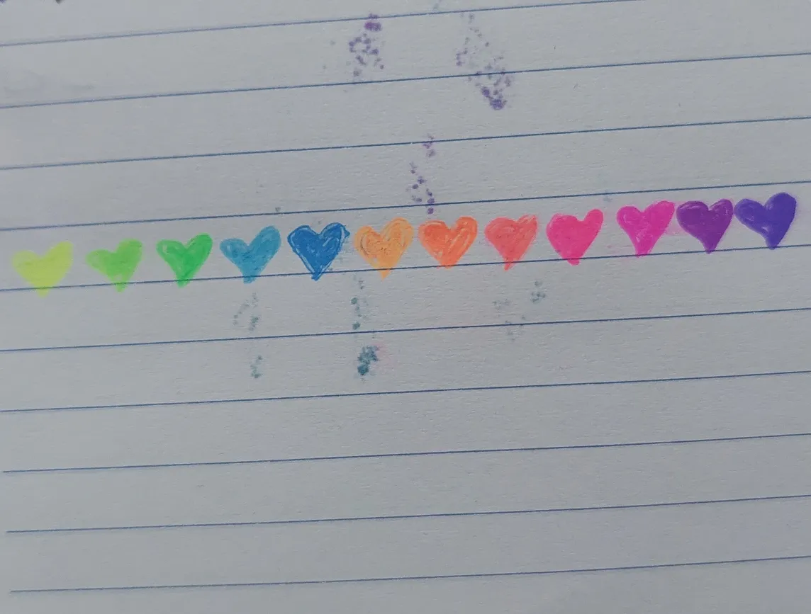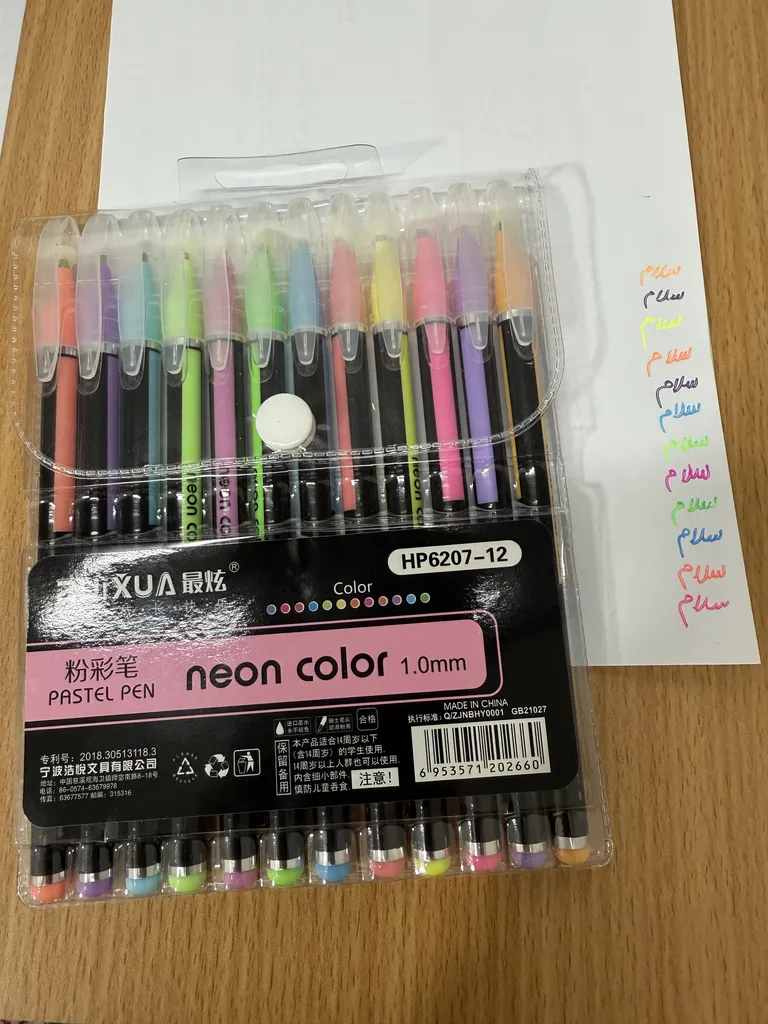 تنوع رنگ ها عالیه، همه ی ۶ رنگ با نوک ۱.۰ هست که بسیار مناسبه برای خودکارهای رنگی چون با نوک ۰.۷ به راحتی دیده نمی شوند.