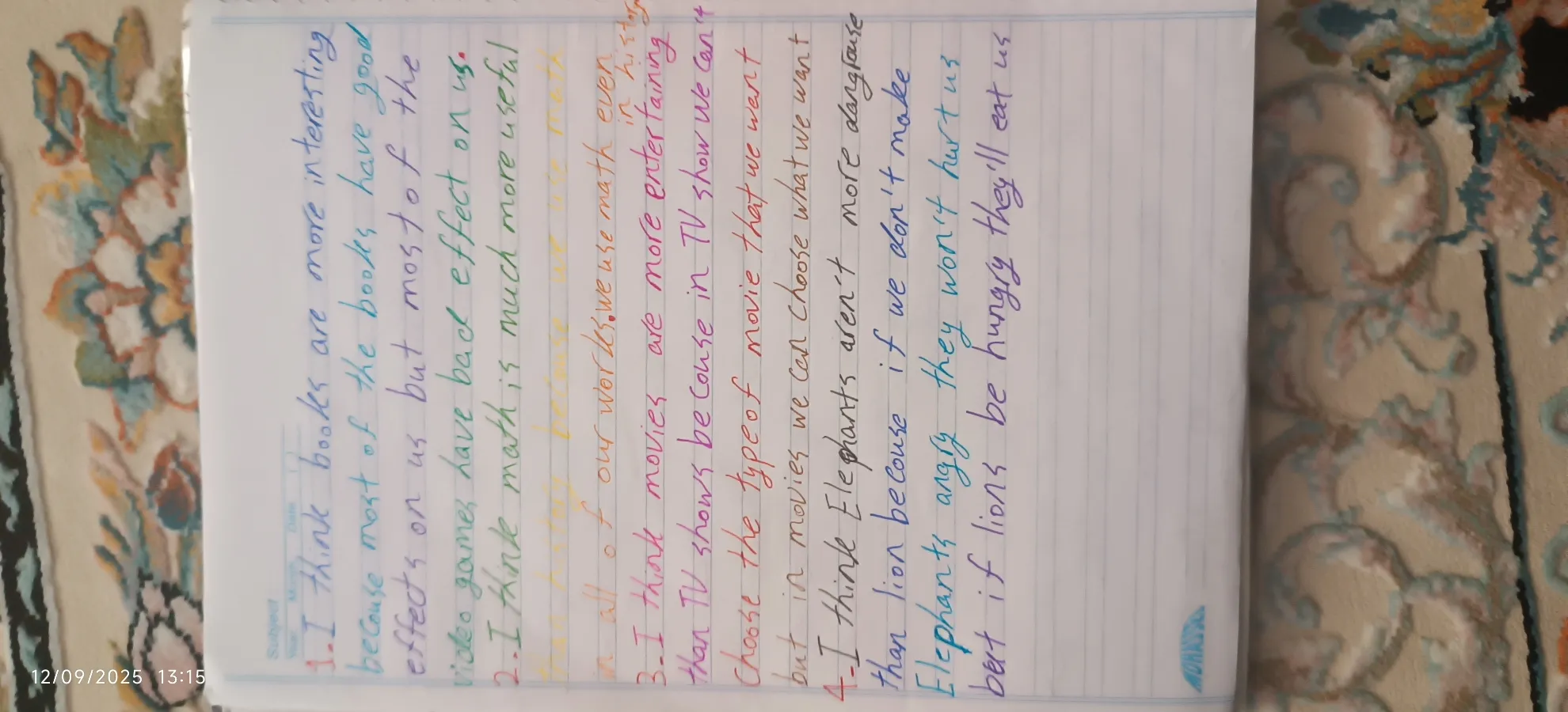 نسترن بوالحسنی : من که راضی بودم. یه رنگی داره. نارنجی کمرنگی که به زرد میزنه که یجوریه، خوب نمینویسه.مگر باش یه چی نقاشی بکشی توشو پرکنی. بجز اون بقیشون خیلی خوشگلن. امیدوارم زود تموم نشن فقط.