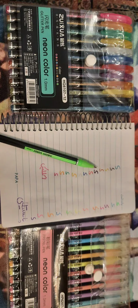 برای دخترم خریدم کلی ذوق کرد. از عکس هاش صد برابر خوشگلتره. خیلی خیلی راحته برای نوشتن. همه خودکار ها رنگ جوهرشون مشکیه . طرح هاش خیلی قشنگه. عکس هاش و میذارم ببینین (چه لذتی داره دقیقا همونی میخوای که خریدی و اطلاعات محصول با سفارش مطابقت داره) . ممنونم. خدا بهتون برکت بده