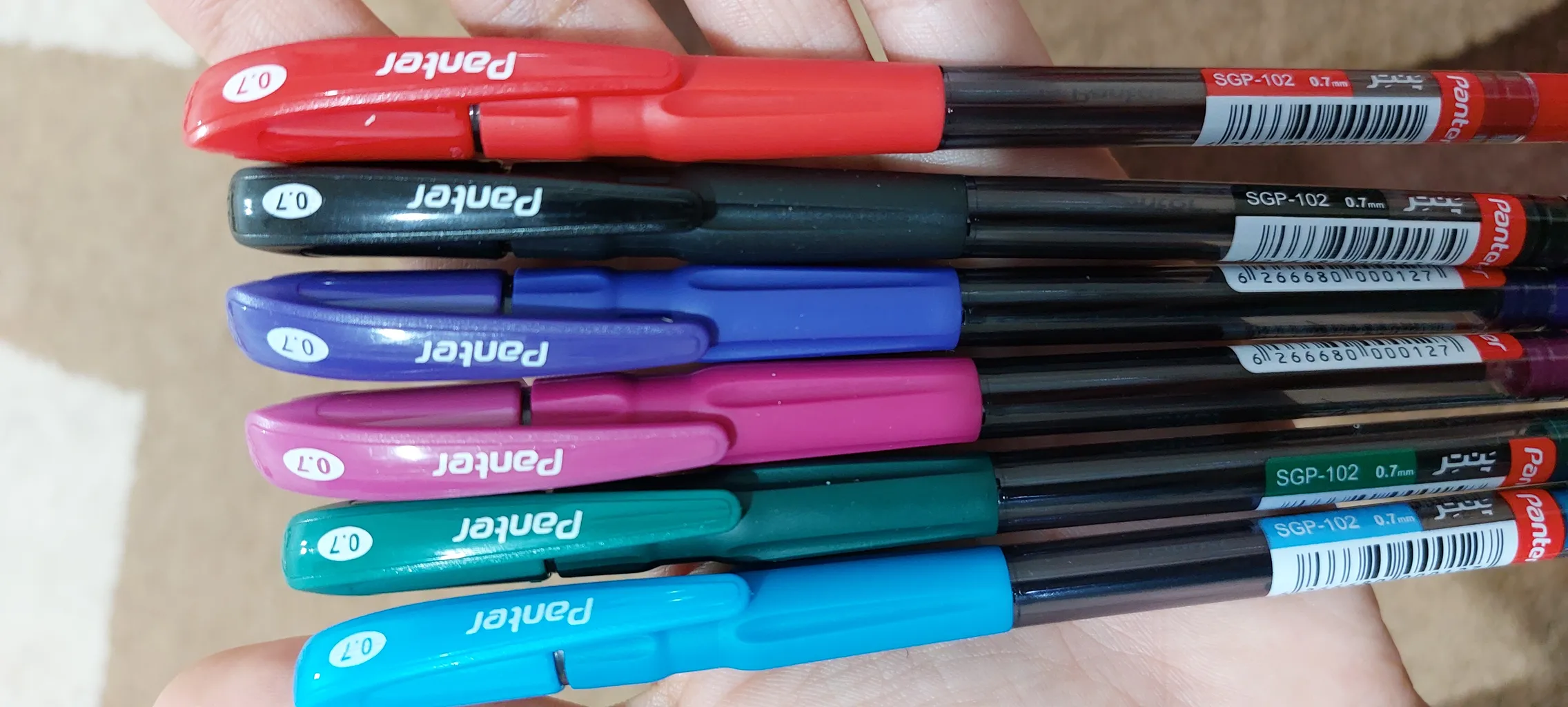 من این بسته 8 تایی چند رنگ پنترو سفارش دادم و تو بسته بندی سالم و درست به دستم رسید . کیفیت خودکار پنتر حرف نداره و چون ژله ایه خشک نمیشه و کیفیت رنگاش هم خوبه . اگه نیاز دارید تو خریدش شک نکنید.