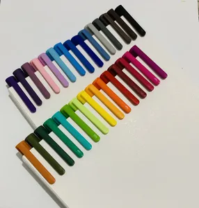 رنگ های خیلی خوبی تو این پک هست. به صورت پلمب دستم رسید ولی رنگ قرمز خشک بود که از نظرات دوستان بهره گرفتم و قرار دادم در آب جوش و بعد اون گذاشتم رو رادیاتور که راه افتاد ولی رنگش الان قرمز خیلی روشن شده که به صورتی میزنه ولی چند خط می نویسم پر رنگ تر میشه و به قرمز نزدیک تر. کد رنگ هارو تا جایی که حدس میزدم قرار دادم. رنگ آخر استدلر نئونیه که نیست تو این پک. یه رنگ آمیزی هم با چند تا از رنگ هاش انجام دادم که عکسش هست. قیمت افتاد دونه ای ۲۶ تومن و کل پک ۳۹۰. به نظرم یکم گرونتر از قیمت واقعیش باشه. در کل دوسشون دارم، خیلی خوش دست هستن و رنگ های کاربردی