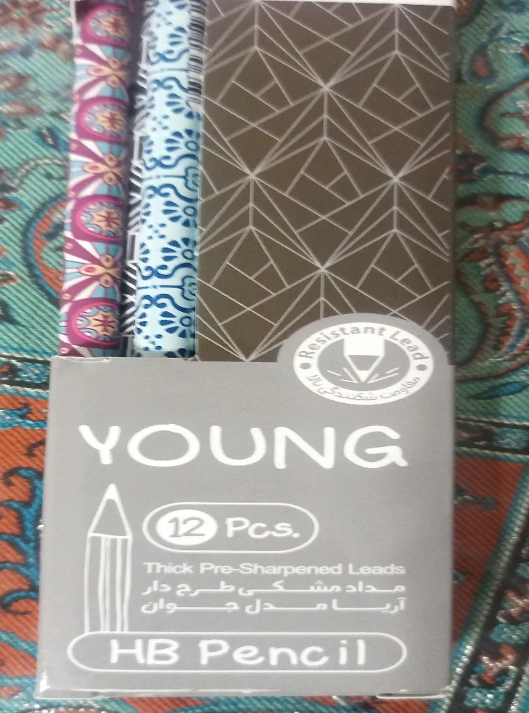 ترنم طوسی : مداد مشکی ؛ خب مداد هاش چیزی نیست که توی عکس هست، و یکم سنگین زیاد کیفیتش خوب نیست کمرنگ مینویسه اما خب میتونه بدم نباشه قابل استفادس