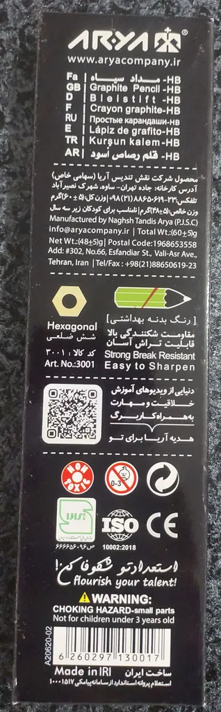 محمدجواد نعیمائی عالی : مداد آریا از مداد های تولید ایران بسار باکیفیت و معتبر و قدیمی هست و من از خرید محصول بسیار راضی هستم
