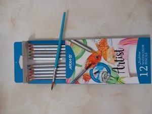 سلام دوستان من این مداد اب رنگیو تهیه کردم واقعا همه جوره عالی بود😍هم بدون اب هم با اب امتحان کردم رنگ ها پررنگ و خوب بود راحت تراش میشه مثل مدادای دیگه بسته بندیشم خوب بود درکل من خوشم اومد و یه نقاشی باهاش رنگ کردم دوتا دیگه از نقاشیامم با این مدادا پررنگ تر کردم نتیجش عالی شد🥰عکساشونو میذارم براتون اولین تجربم بود ولی خودم دوستش دارم و واقعا موقع کارباهاش لذت بردم. یه قلمو هم داره برای فید ومحو کردن رنگ ها.مغزیش هم تقریبانزمه راحت مثل بقیه مدادا تراش میشه کثیف کاری هم نداره