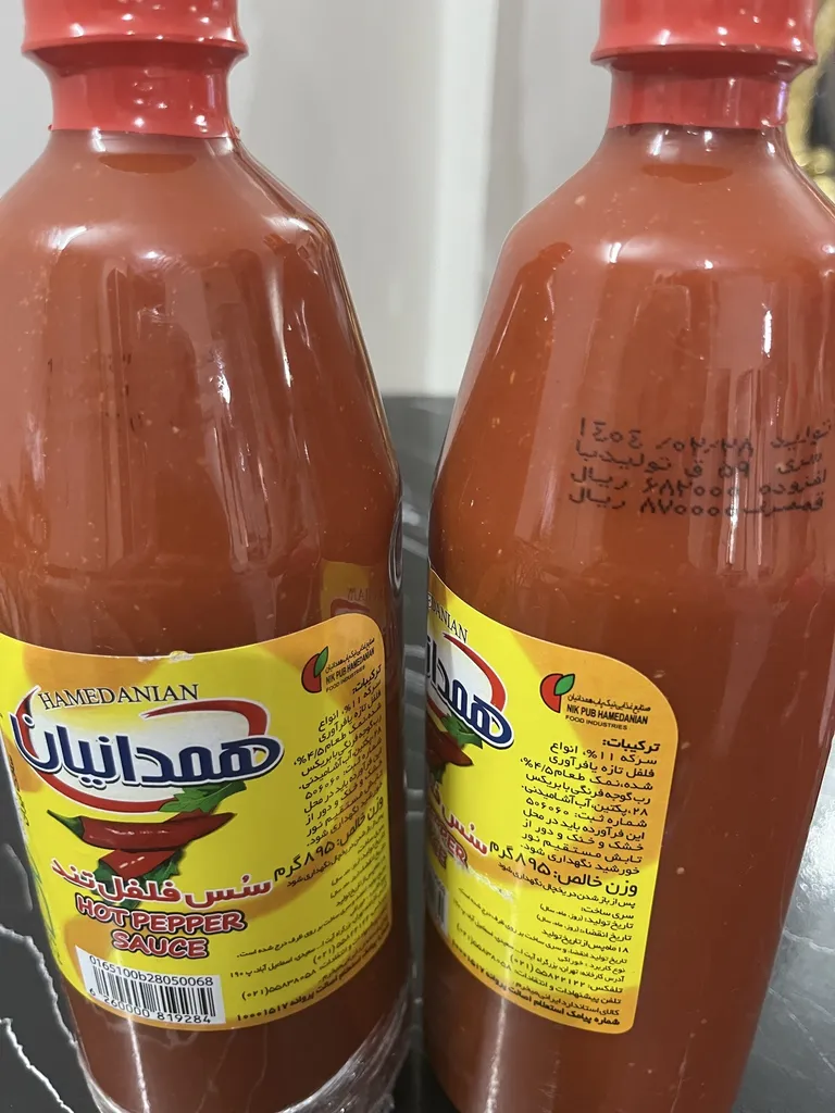 طعمشو با سس های که دارم چک کردم ترش تر و رقیق تره اصلا اون طعم منحصر بفرد همدانیان رو ندارن ضمنا پرینت لیزری قیمت و تاریخ تولید انقضاشم در سه خط چاپ شده و اصلا سری ساخت نداره که با سس اصل همدانیان که چهار خطه و سری ساخت داره متفاوته من مرجوع میکنم عکس اصلی رو میزارم