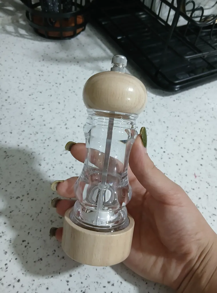 مرضیه معظمی خوزانی : فلفل ساب ؛ خیلی خوب آسیاب می کنه البته من برای نمک صورتی درشت گرفتم فقط محصول با عکس مقایرت داره و بزرگتر تر از عکس هست ولی جنسش خوبه و تیغه های آسیاب سرامیکی هست