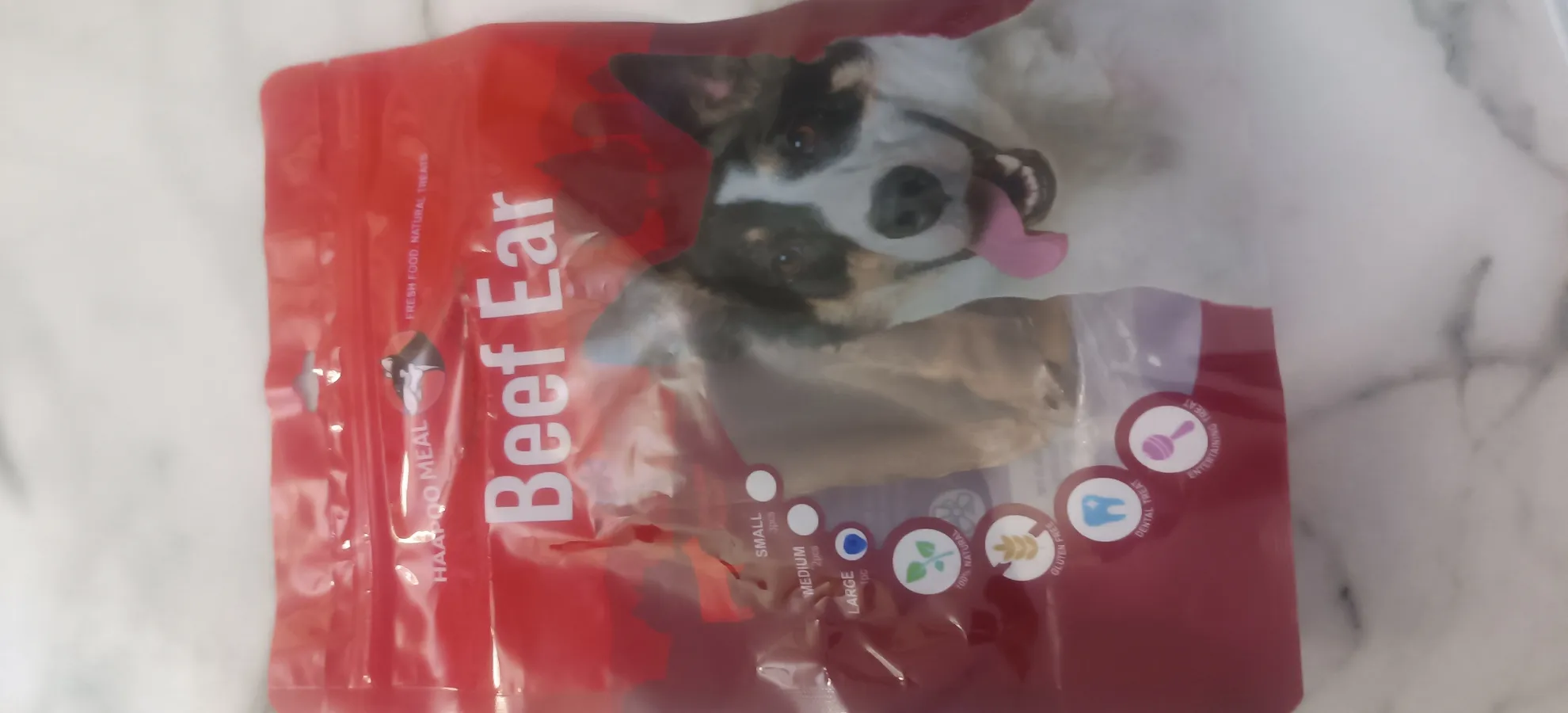 دیدمش جا خوردم ، کوچیک بود ولی سالم و خشک بود . بنظرم یکم سخت و سفته . سگ با احتیاط میخوره. در کل بد نیست ،خوبه .ولی تو عکس ظرف بزرگ و پر بود ،چیزی رسید دستم نصف اندازه عکس بود .پیشنهاد میکنم سگ دوست داره