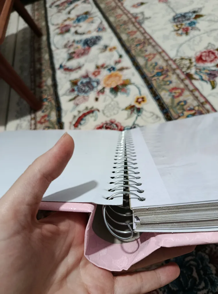 زهره مثنا : آلبومی که برای من فرستاده شده اصلا شبیه این تصاویر نیست. من دو تا آلبوم نیاز داشتم و به خاطر اینکه شاید محصول ارسالی مورد نظرم نباشه دو تا آلبوم مختلف از دیجیکالا گرفتم. این یکی کلا یک شکل دیگه است. سیمی نیست و کیفیت صفحاتش هم چندان خوب نیست. جالب اینجاست که من دو تا کد مختلف سفارش دادم و دو تا آلبوم مختلف دستم رسیده و حتی تا دیروز هم چک میکردم تو حسابم دو تا آلبوم مختلف بود ولی حالا که رسیده اومدم میبینم تو حسابم کد هر دو آلبوم یکی خورده! تصاویرش رو میگذارم. البته حوصله پروسه ارجاع رو نداشتم اینه که استفاده کردم