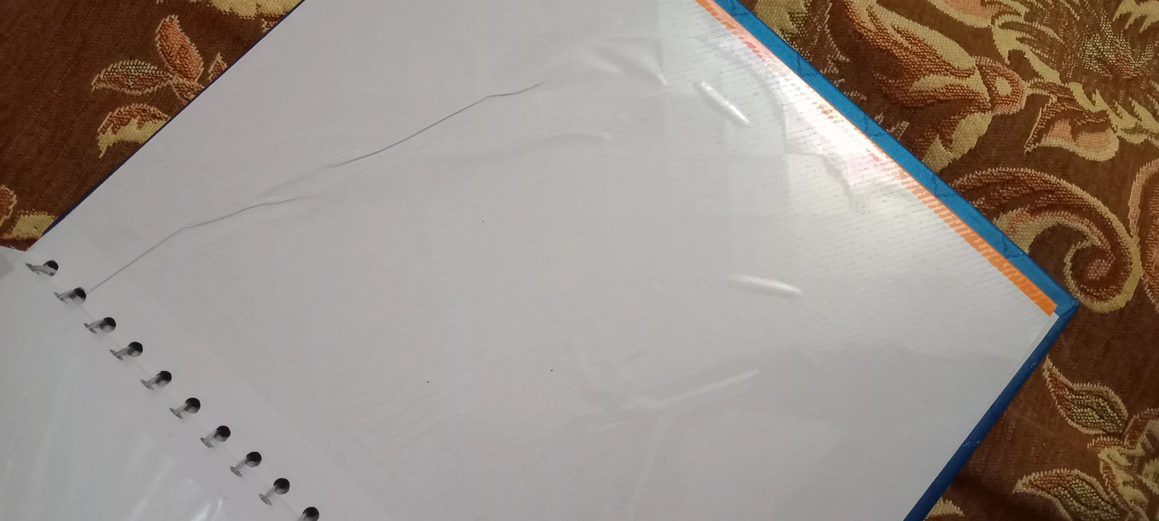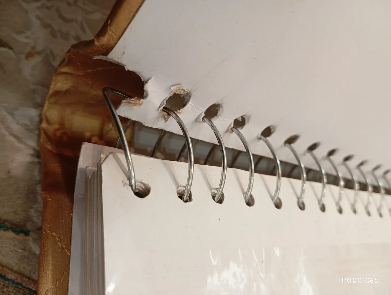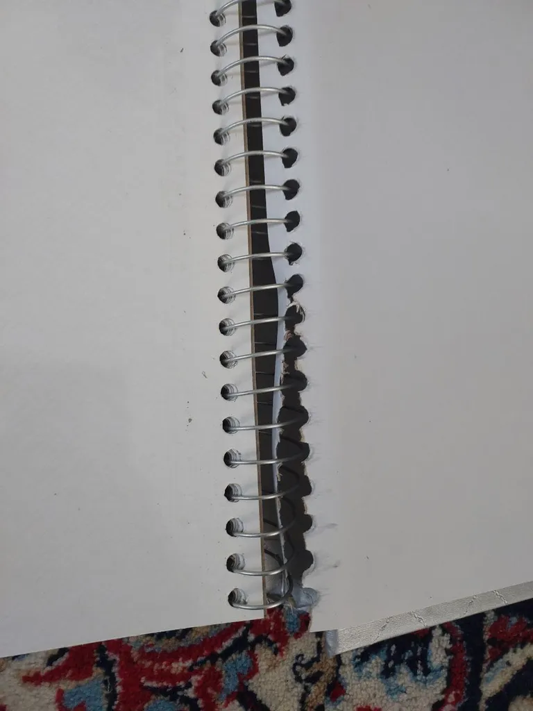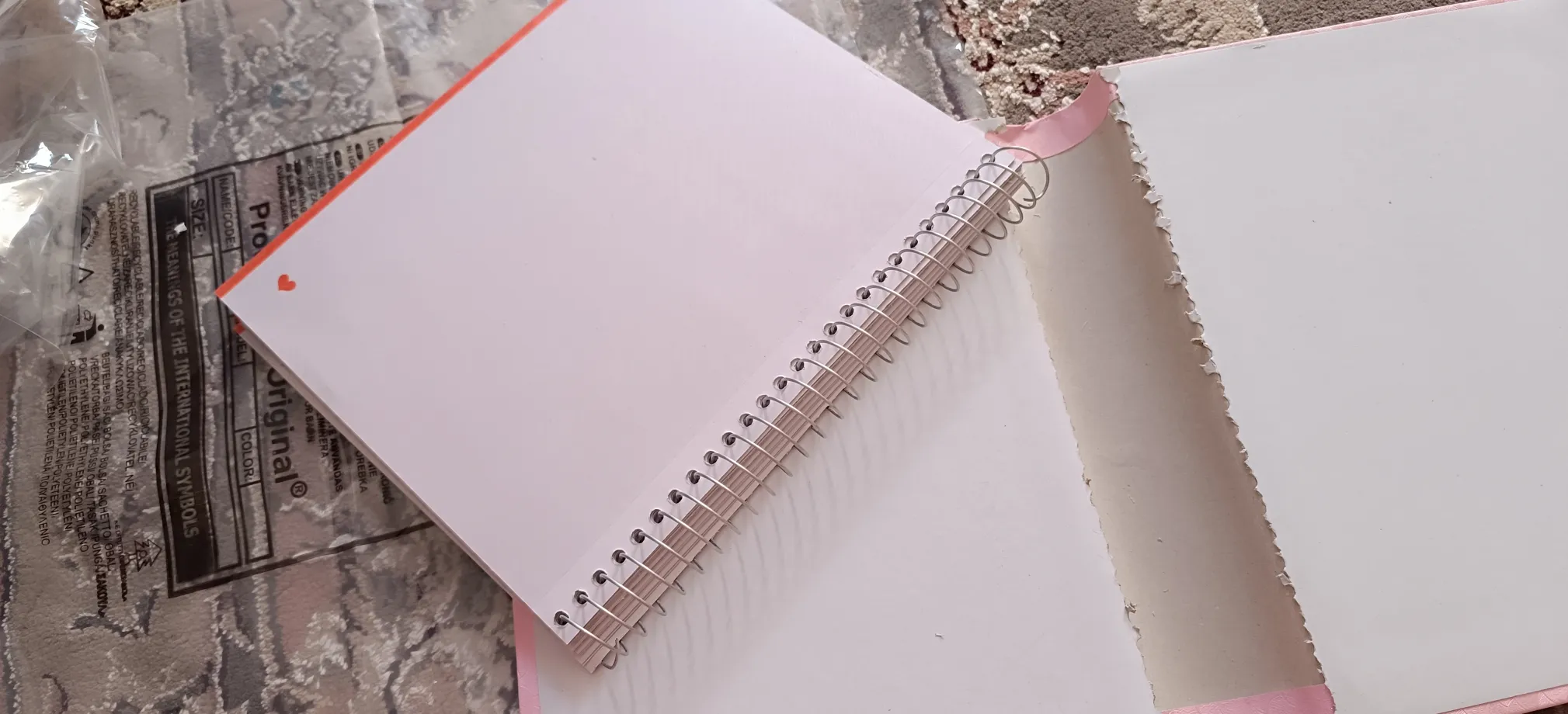 صفحاتشم در ابتدا چون نو و پلمپ هستند از قسمت سیم بهم چسبیده بودند که میتونید خیلی باحوصله و بدون هیچ مشکلی از هم جداشون کنید.