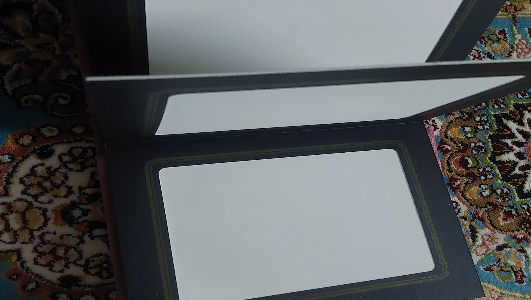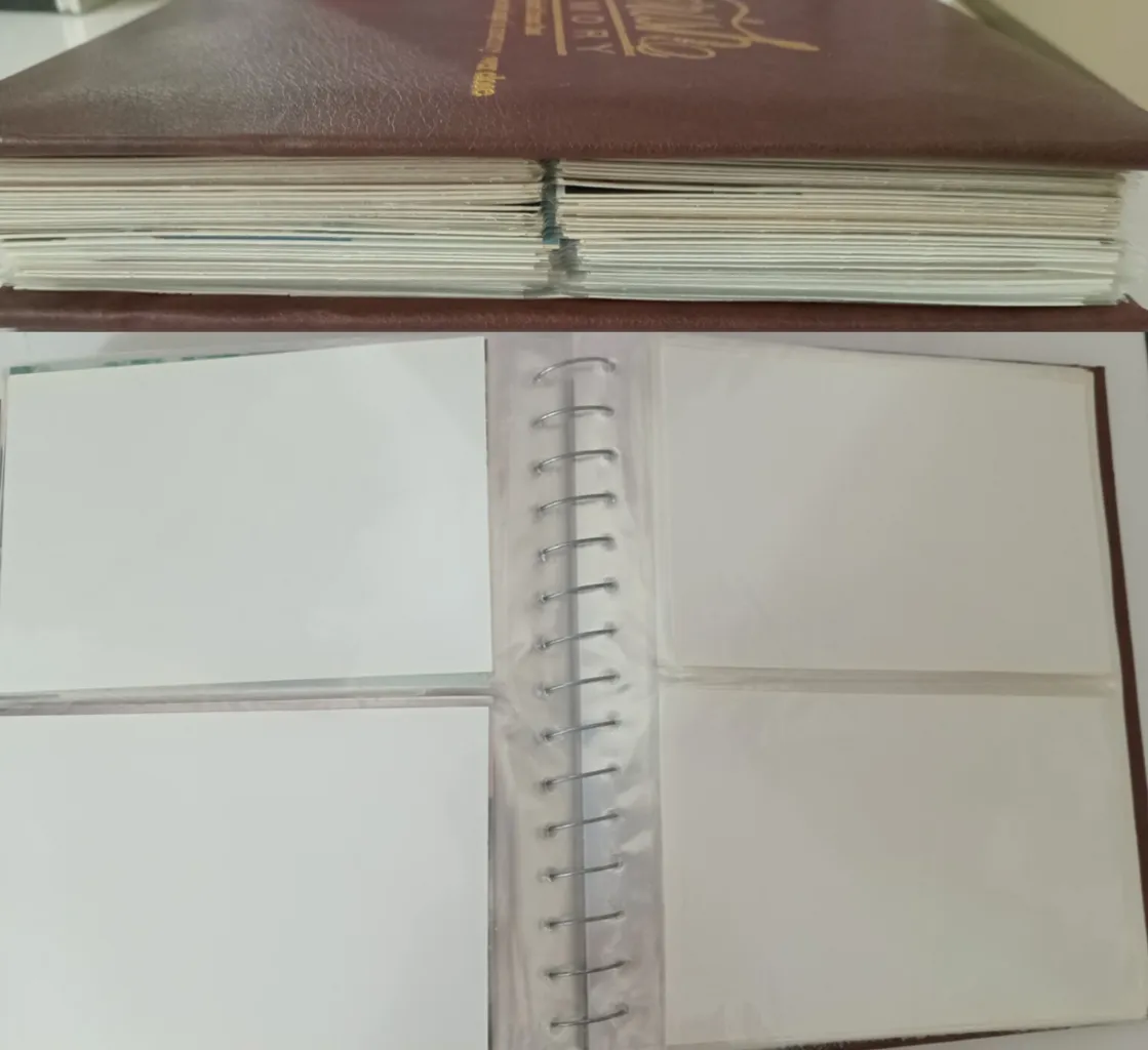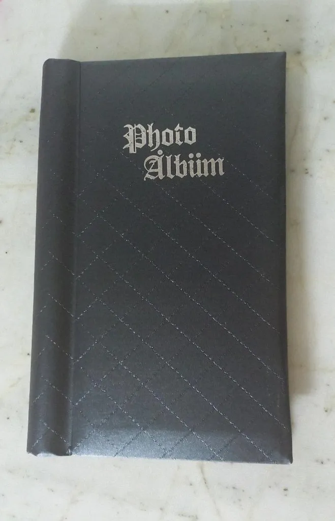 داخل آلبوم چرم مصنوعی سفید و بی کیفیتی بود که بیشتز شبیه پلاستیک های فروشگاهی بود.