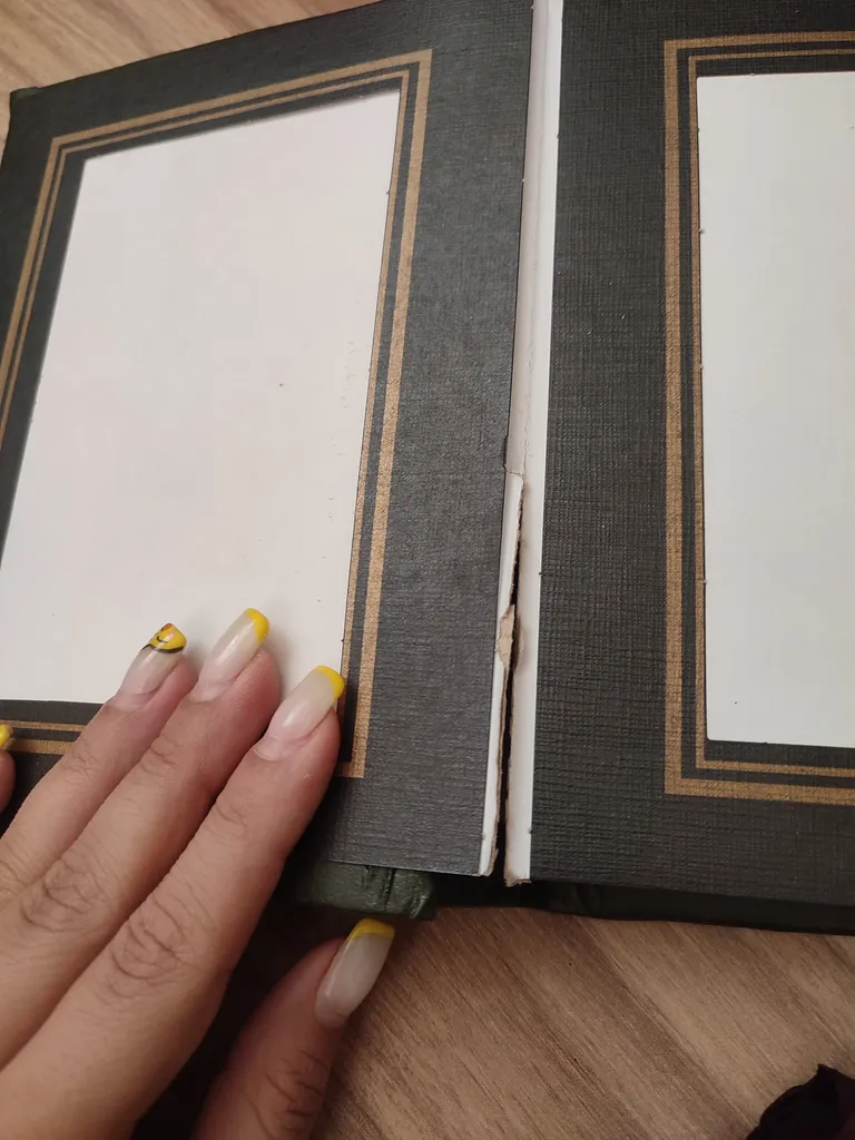 آلبومی که برام ارسال کردن که رو جلدش قسمت جلو و پشت اندازه یه سکه پارگی داشت و قسمتی از چسب یکی از برگه هاش کنده شده بود