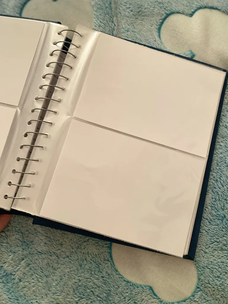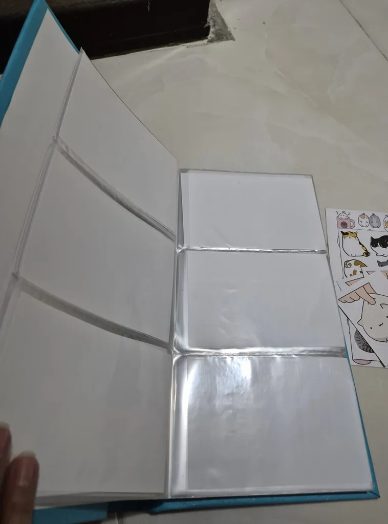 جنس برگه ها از پلاستیک نرم و خوب هست. مثل جنس پلاستیکی که برای کاور مبل شفاف یا رومیزی استفاده میشه. البته من توقع آلبوم قطورتر و بزرگتری داشتم. به اندازه یک کتاب درسی و به شکل مربع هست. ۱۸ در ۱۸ سانت.