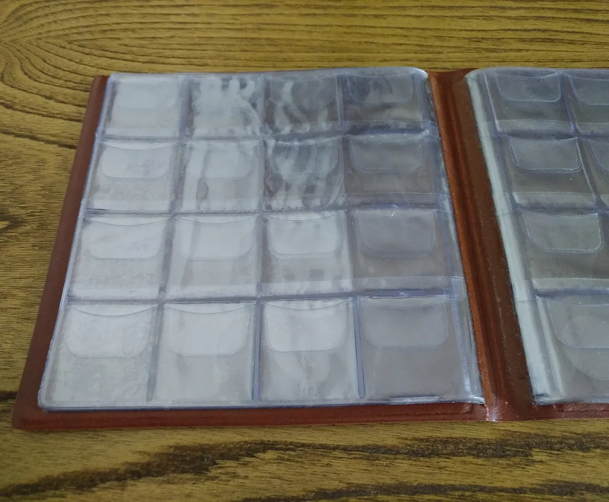 بهتره داخل هر قسمت، از کاورِ سکه، استفاده کنید که عکسش رو براتون میگذارم و در دیجی کالا موجود هست. در هر طرف ۶ برگه داره که کلا میشه ۱۲ برگ. اندازه مربع هر قسمت ۴ در ۴ سانت هست.