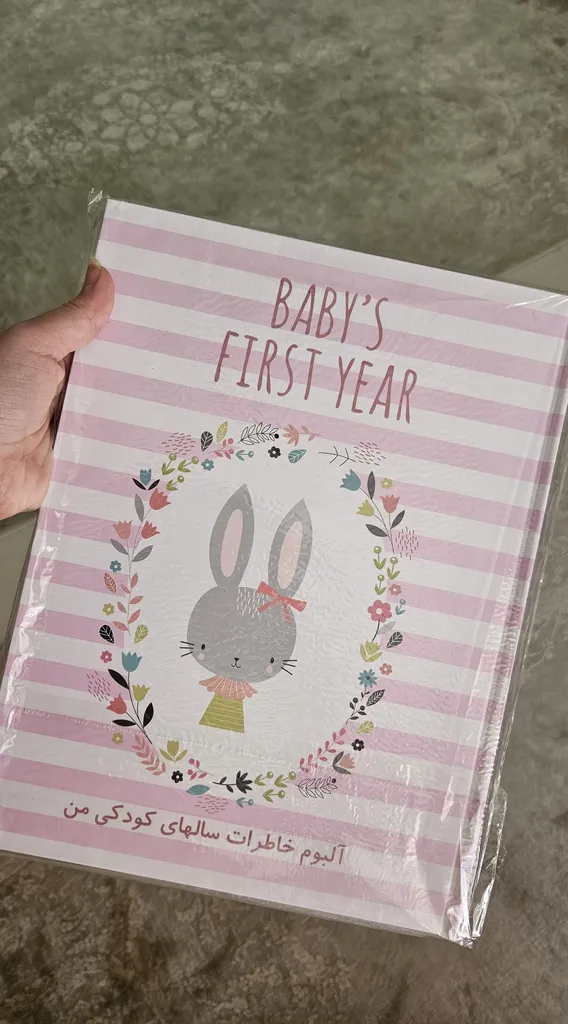 خریدار بدون نام : با کیفیت و طراحی جذاب ؛ مطابق با عکس. بسته بندی خیلی خوب بود. تمام صفحات و جلد سالمی داشت. طراحی داخلش قشنگه. فضای چسبوندن عکس هم جای عکس بزرگ داره هم کوچیک. من راضیم. تا ۱۲ ماهگی و بعد هم تا ۷ سالگی صفحه برای یادداشت داره. فقط من ۲۰۵ ت بود سفارش دادم بعد ۵ روز ک بسته بدستم رسید قیمتش شد ۱۹۰ ت. لطفا قیمت واقعی رو بزارید. اعتماد از بین میره