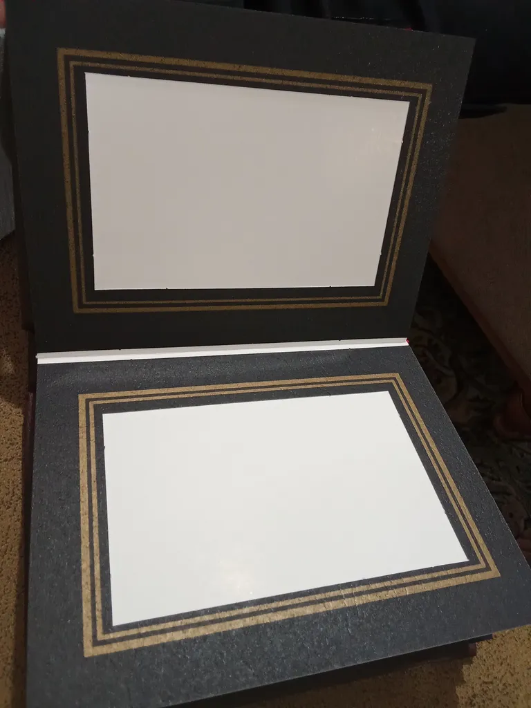 خود البوم برگه های برش خورده بین دو طرف برگه قرار داده که عکس ها لهم نچسبند