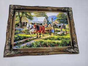 تابلو فرش ماشینی طرح دستبافت مدل اسب و گاری کد 8759