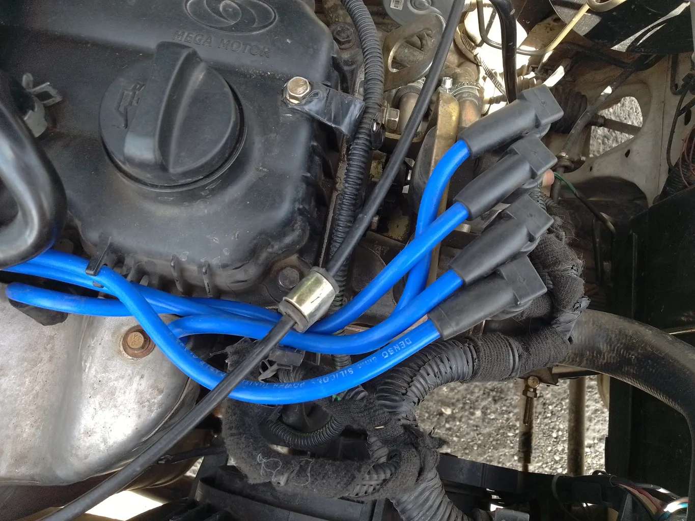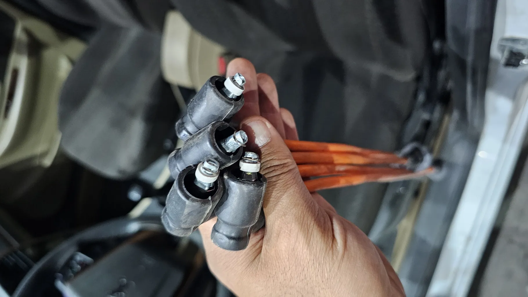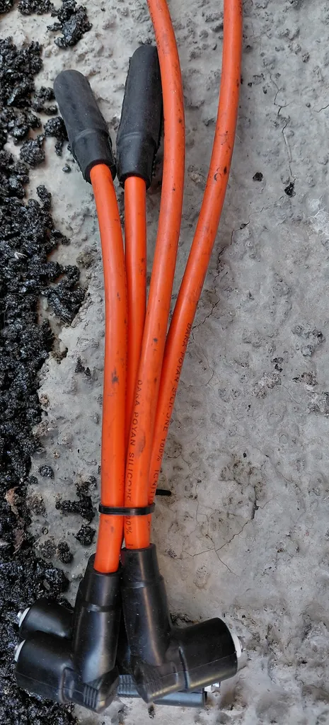 چهار کابل داخل مشمی گذاشته شده روی مشمی نوشته شده NGK در ضمن وایرها روغنی هست براتون عکس میزارم