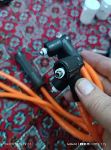 سلام نظر جدید : روی کوییک نصب کردم آمپر پایینتر اومده و فعلا خوبه البته در ابتدا فقط یکی دوباری کپ کرد و خودبخود درست شد شاید باید ریست بشه حالا یا با دکمه داخل موتور یا با سر باتری. و در ابتد از لحاظ ظاهر بدرد نخور بود و علت به درد نخوردن را در نظر چند هفته پیش نوشتم. فعلا که خوبه و راضی هستم. نظر چند هفته پیش: روی وایر نوشته شده :کابل سیلیکونی کلاس اِف 8mm 35kv سی ان جی ال پی جی به سریال 886334955 روی کابل انگار با دست و شبیه رنگ مداد است روی کابل بصورت فارسی نوشته شده ان ج ی ک چهار کابل داخل مشمی گذاشته شده روی مشمی نوشته شده NGK در ضمن وایرها روغنی هست براتون عکس میزارم