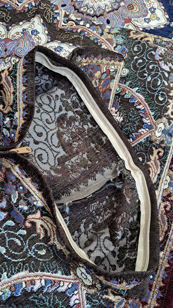 سیده مریم کاظمی مازندرانی : روبالشی ؛ چهار رنگ از چهار فروشگاه سفارش دادم. هرکدام به شکلی دوخته شده بودند. رنگ آبی زیپ نداشت. رنگ قهوه ای روشن هم زیپ داشت هم لبه. رنگ قهوه ای و طوسی زیپشان کنار لبه دوخته شده بود. درکل بسیار زیبا بودند و جنسشان هم قابل قبوله