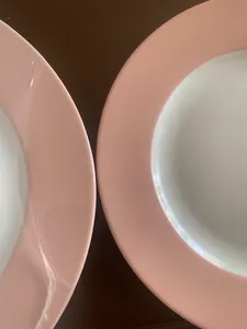 من که از جنس و رنگ و لعابش خیلی خوشم اومد واقعاً زیباست! 🤩 اندازه ش هم کاملاً مناسبه چون خیلی پهن و بزرگ نیست. اما کیفیتش درجه ی عالی نیست چون روی برخی از بشقابها خطوط فرو رفته ای دیده میشه که البته خیلی مشخص نیست ولی اگر حساس باشید براتون ناخوشایند خواهد بود. 🫤